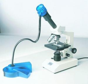 Universell einsetzbar, CCD-Element 1/3" PAL, 628 horizontal x 582 vertikal Bildpunkte, 365.000 Pixel, 330 TV-Linien, Schwanenhalslänge 52 cm, Lichtempfindlichkeit 1 Lux, Multifokus Linse 8mm mit D-mount Gewinde, wahlweise 100% Bild oder Zoom 25% Vergrößerung zur Ausfüllung des Bildschirmes, Weißabgleich und Iris automatisch, Gehäusefarbe blau-transparent, Anschlusskabel 3,7m mit Adapter S-Video, Cinch und Scart, 220/230V Steckernetzteil, Mikroskopadapter mit WF10x Optik.